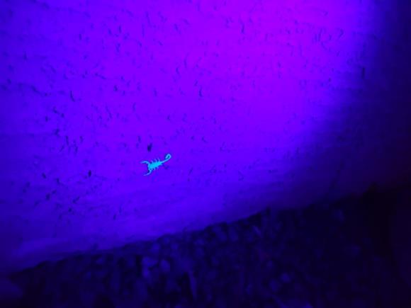 특수 플래시로 비추니 전갈이 야광색으로 보인다. 으악, 징그럽고 신기하고 희한하고 아까도 말했지만 쬐끔은 귀엽기도 하다.ㅠㅠ 긴 막대기로 잽싸게 낚아 채 죽인다. 여기저기 플래시를 비추니 전갈이 많기도 하다. 계단, 잔디, 풀잎 속, 집 주위 어디든 활보하고 다닌다, 세상에나…